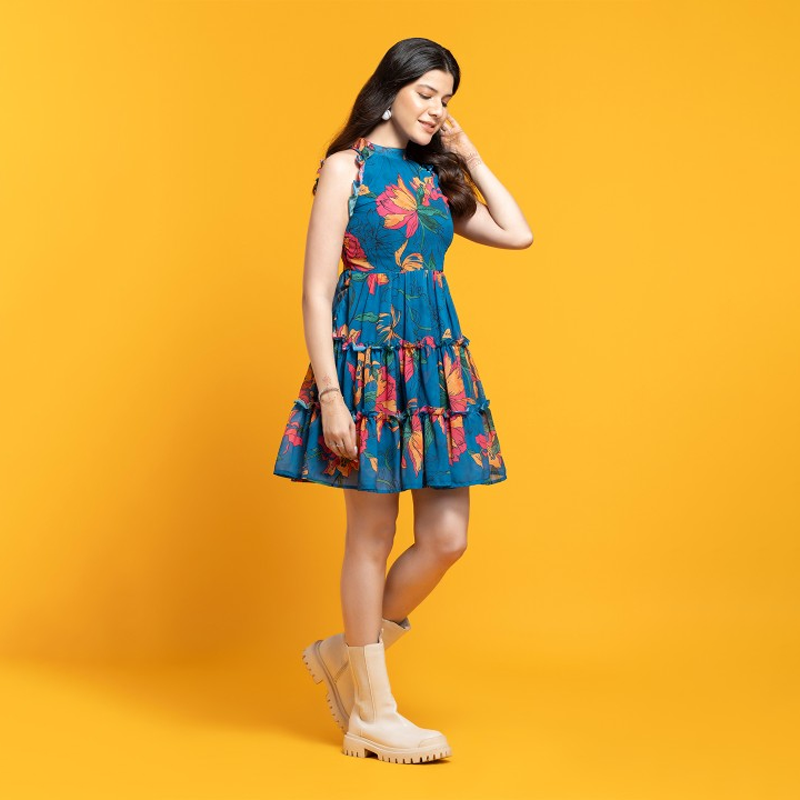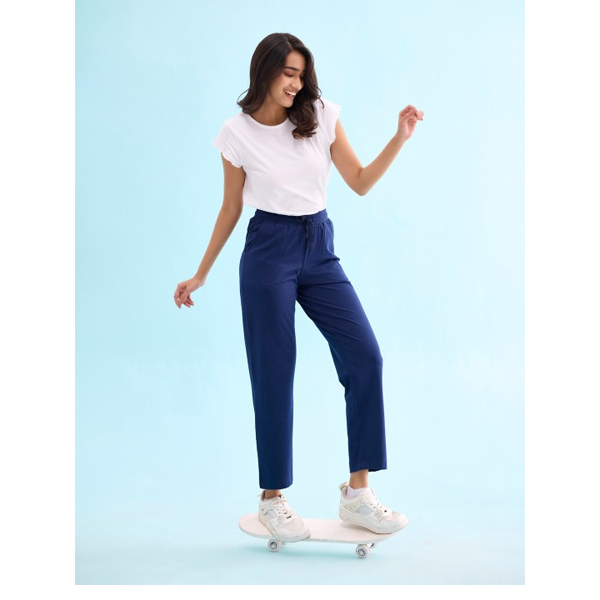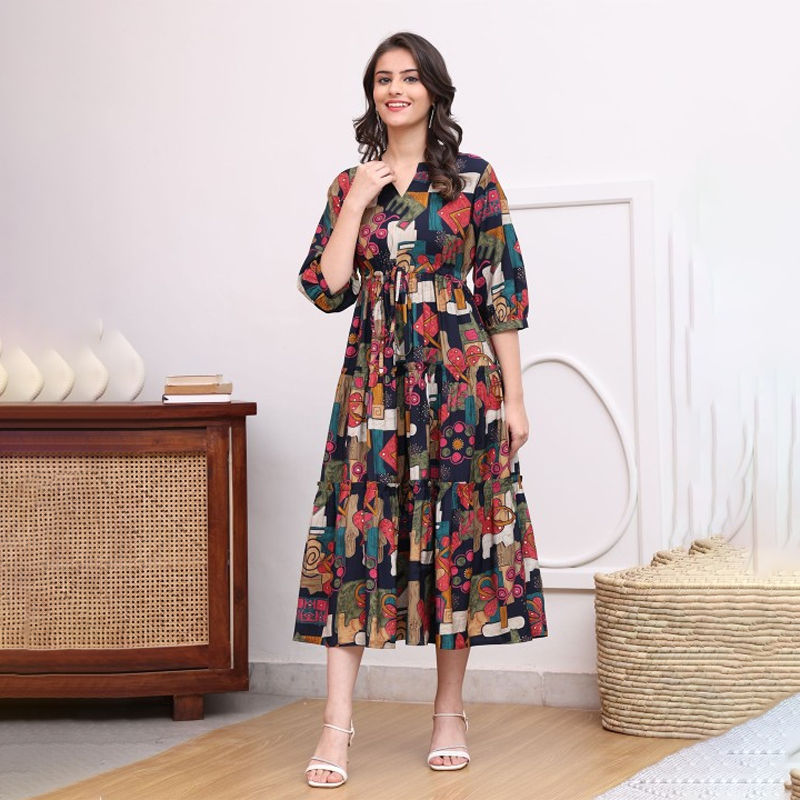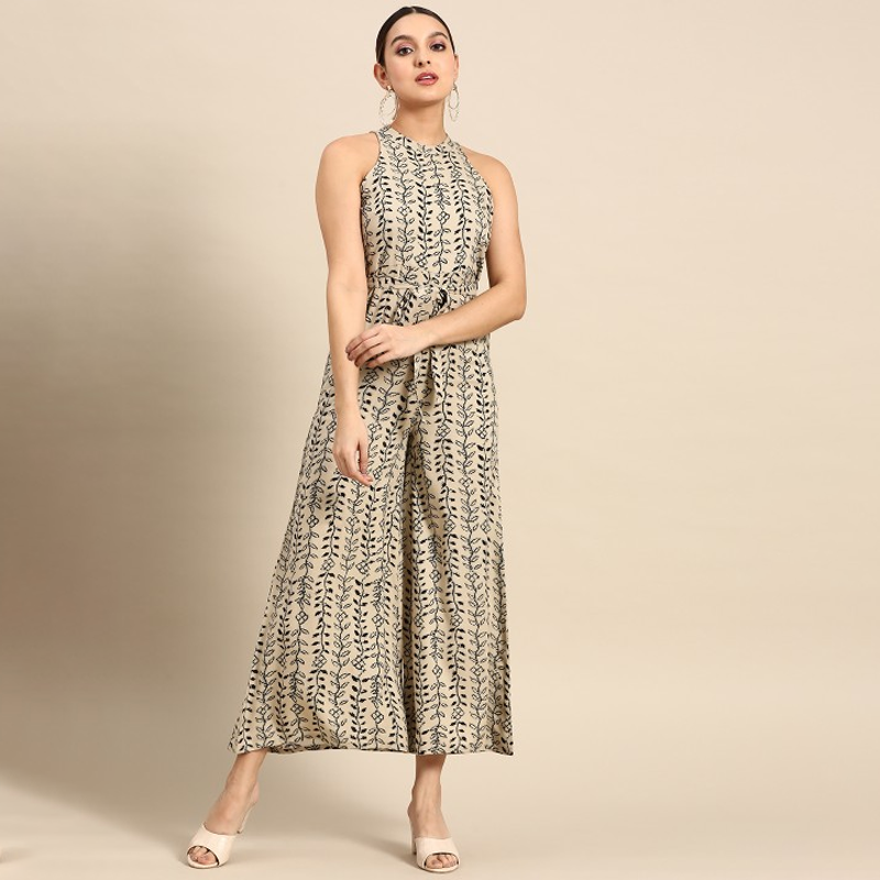 Navy blue and white printed basic jumpsuit ,has a boat neck, three-quarter sleeves, 2 pockets Size & Fit The model (height 5'8) is wearing a size S Material & Care Viscose Rayon Machin wash